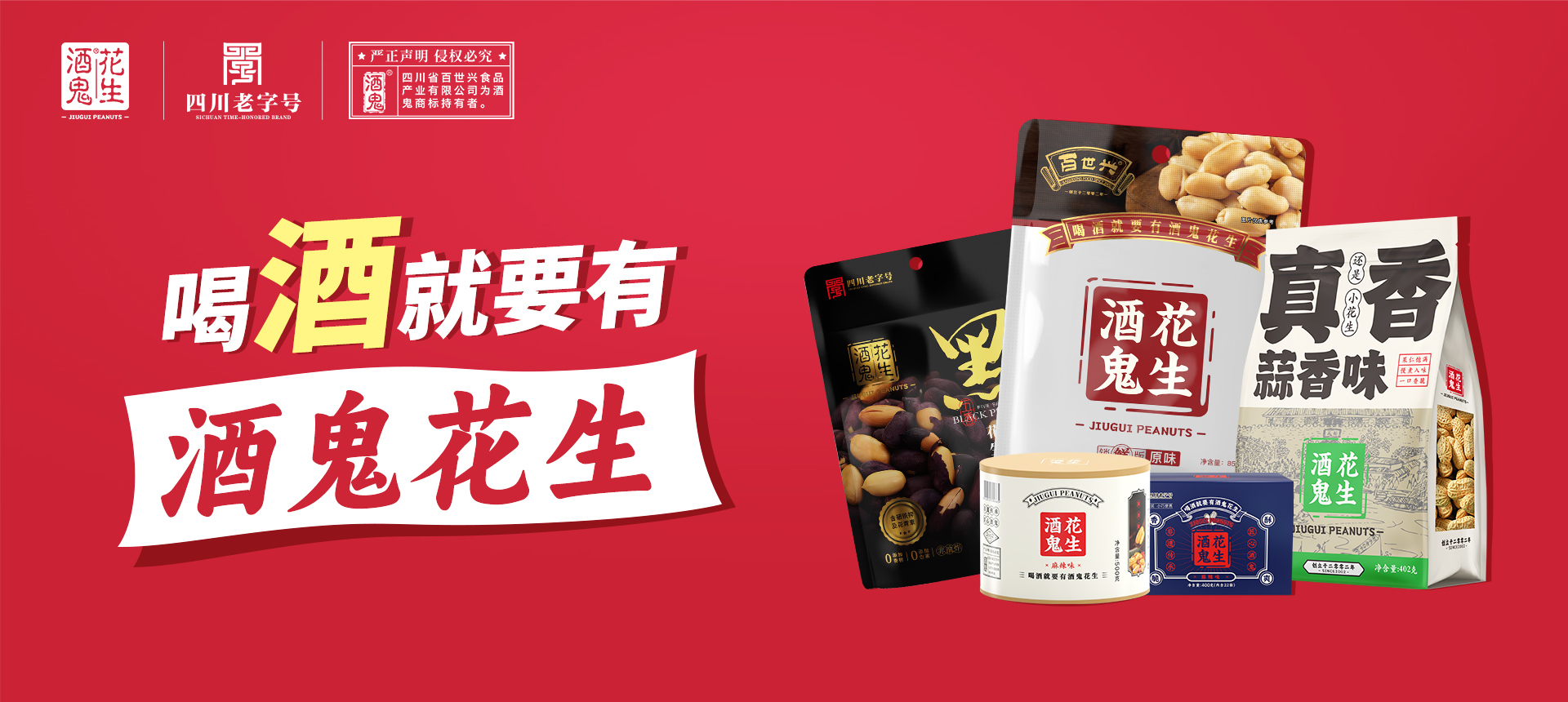酒鬼花生是四川百世興食品有限公司創立的品牌,總部設立于四川成都,是一家集研發、生產、銷售為一體的花生休閑食品企業。榮獲“農業產業化省級重點龍頭企業”“非物質文化遺產”“四川老字號”等權威認證,經過二十余年的辛勤耕耘與不懈努力,已成長為中國花生食品行業的領導品牌。